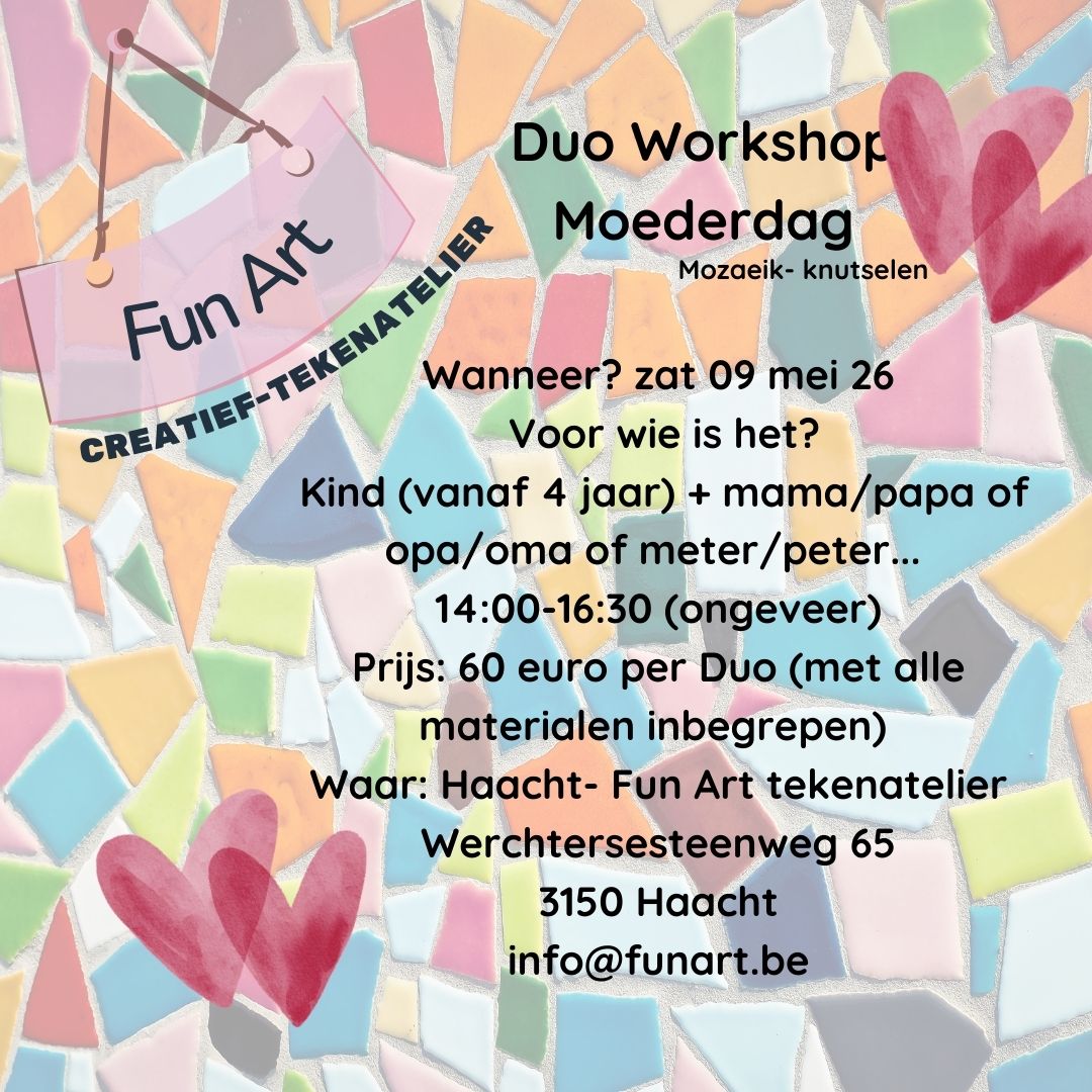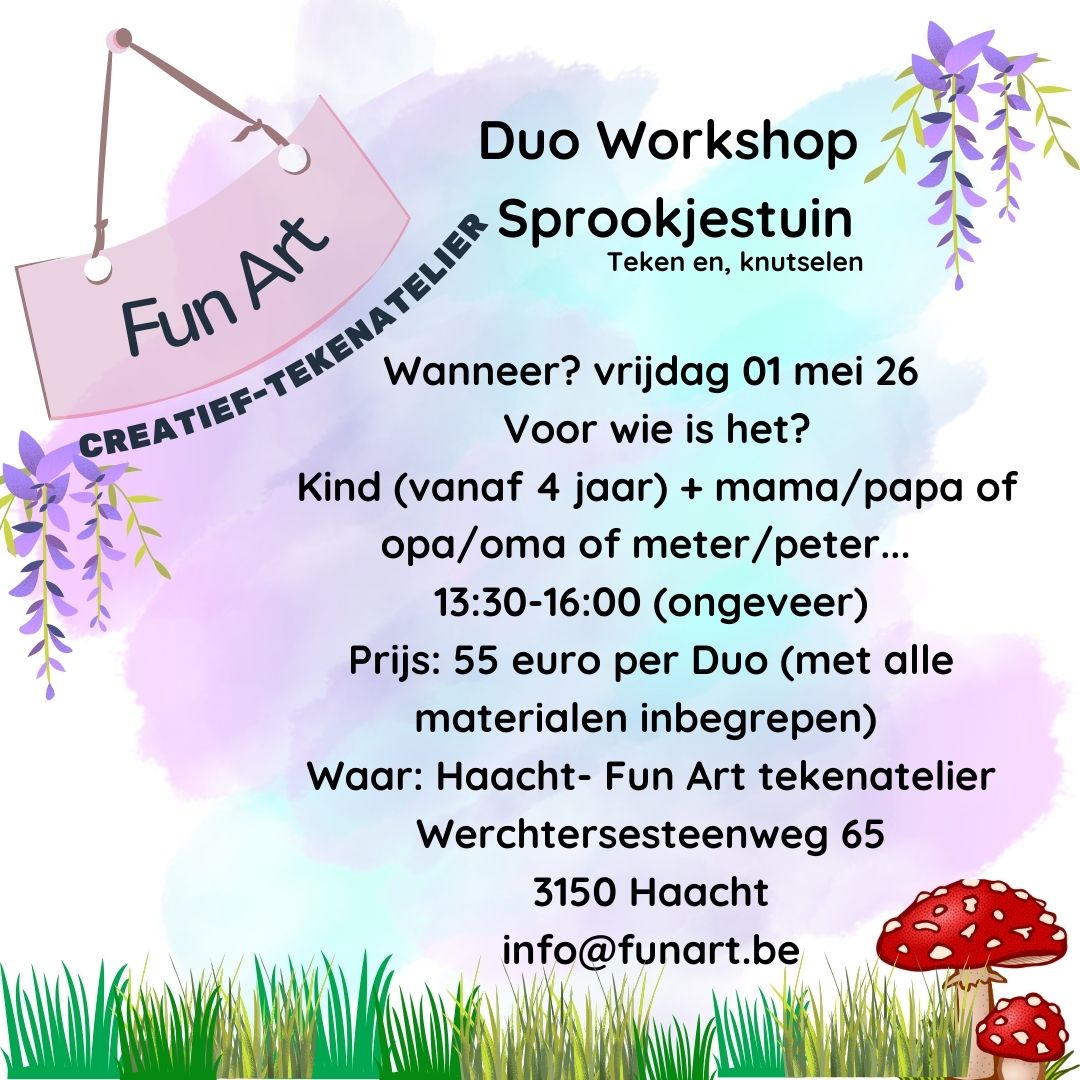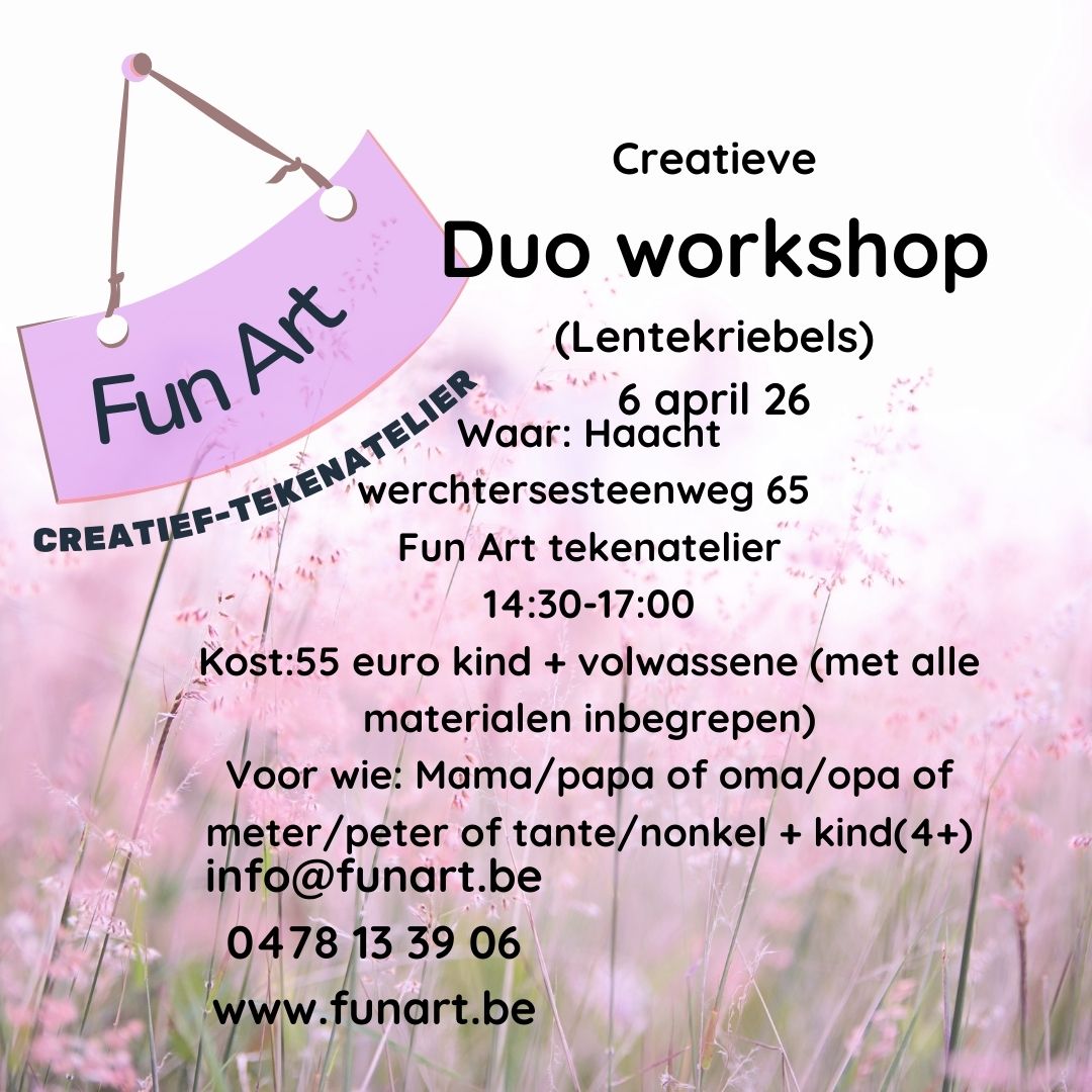 - Duo workshops: duo’s van één volwassene samen met één kind vanaf 04 jaar.