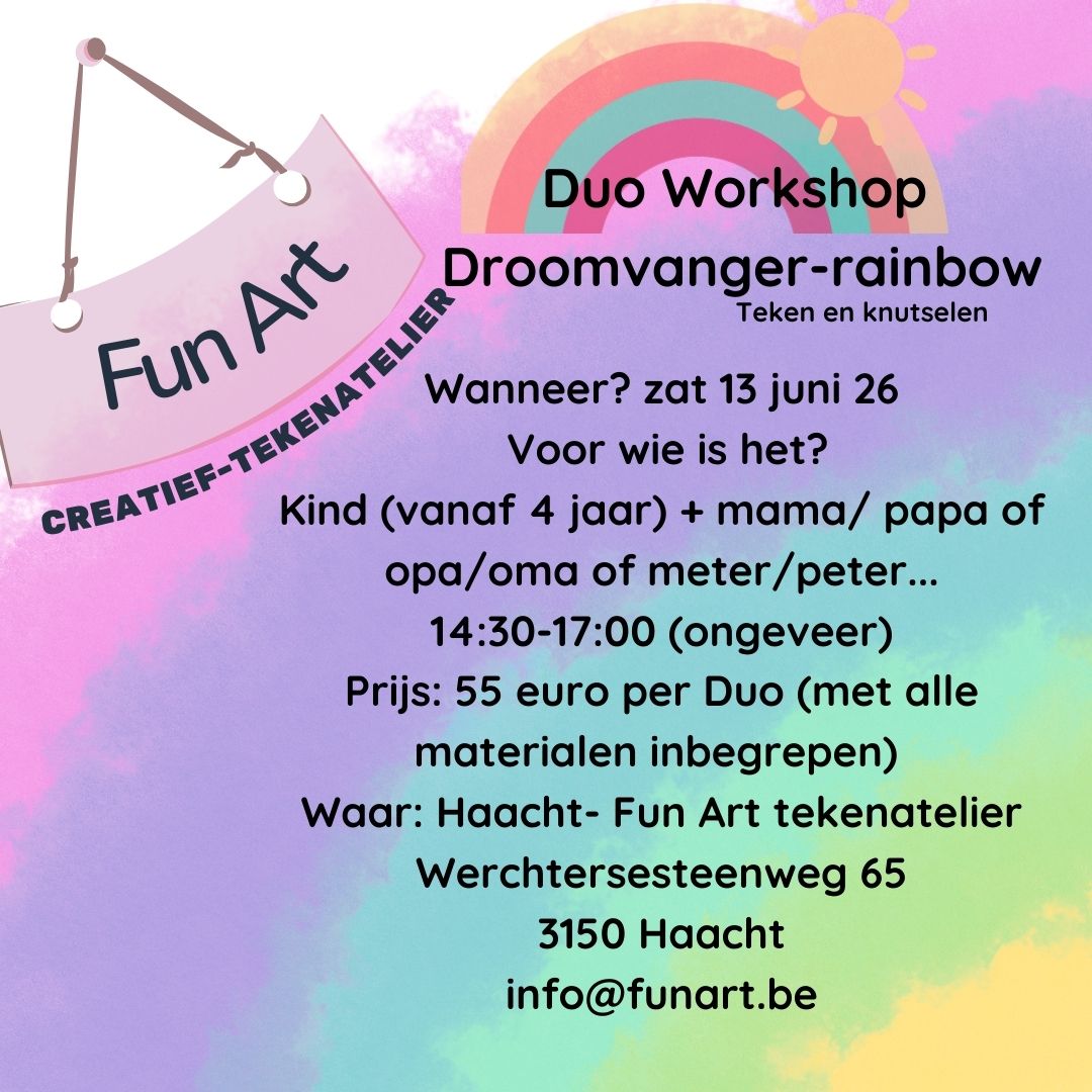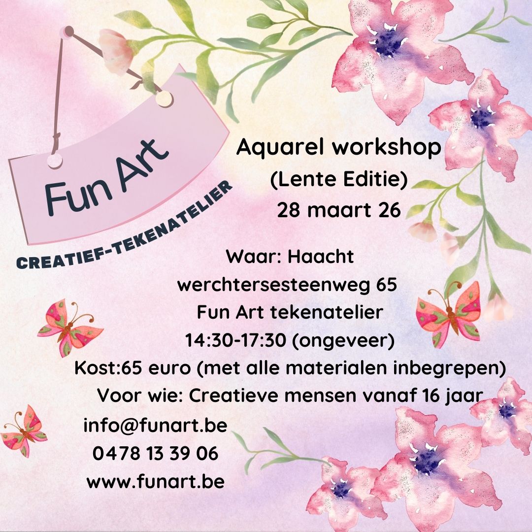 - Inschrijven voor onze workshops kan via info@funart.be. Je betaalt op een veilige manier en je plaats wordt na betaling onmiddellijk gereserveerd.